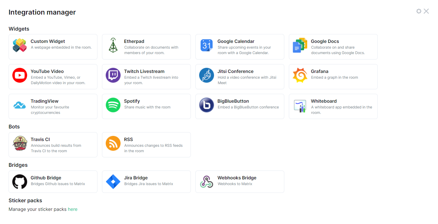 • Added (early) support for matrix-hookshot's GitHub, Jira, and Webhooks bridging.